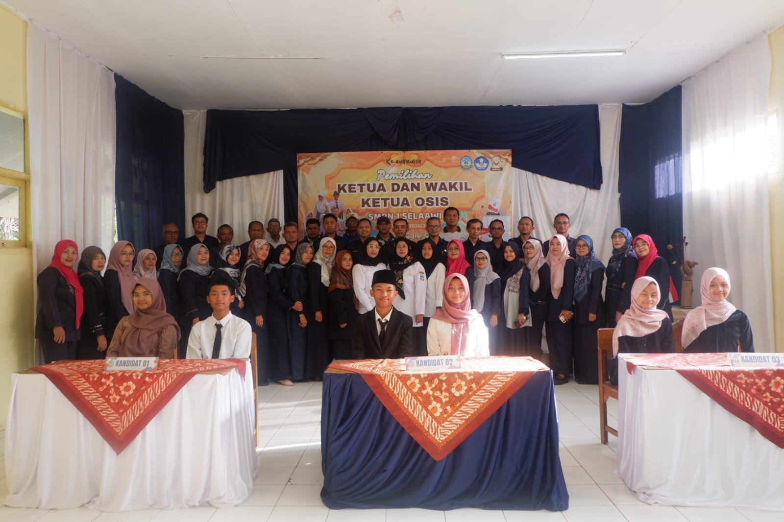 Pada pemilihan kali ini, terdapat tiga pasangan calon yang berkompetisi, yaitu pasangan calon nomor urut 1 Nabila dan Qolbi, pasangan calon nomor urut 2 Rizki dan Raisya, serta pasangan calon nomor urut 3 Ayuni dan Khanza. Masing-masing pasangan calon telah menyampaikan visi dan misi terbaik mereka demi kemajuan OSIS dan sekolah.